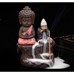 木製 本を読む小さな僧侶像 高さ10cm
