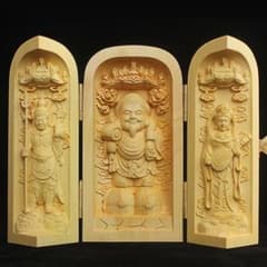 柘植木彫仏像 浄土宗西方三聖 開閉式箱型