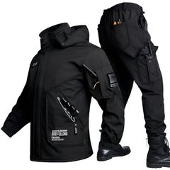[Inkpoo] 登山ジャケット コート メンズ 上下セット 冬服 裏起毛 アウトドアジャケット 防寒 防風 耐久撥水 人気 かっこいい クール おしゃれ 体型カバー スキー ウォーキングウェア 釣り Black XL 0