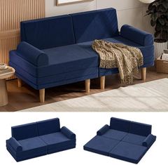 3人掛けソファ、ソファベッド、デニムソファ、収納ソファ、ブルーソファ、オシャレな