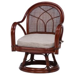 不二貿易 座椅子 籐椅子 回転式 幅52×奥行54×高さ69cm ブラウン ラタン 肘付き 座面高33cm 完成品 85342ri