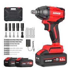 【迅速に発送】ナウィン 20V充電式インパクトレンチ 電動インパクトレンチ 最大トルク 350N・m コードレス ブラシレスモーター ボルトの締付・緩め ホイール交換 無段変速 高輝度LED照明 豊富な付属品 取扱説明書 収納ケース (350N・2個電池)