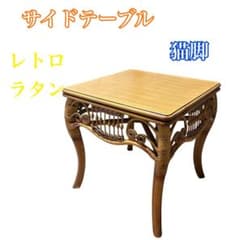 ラタンテーブル レトロ 家具 センターテーブル サイドテーブル 猫脚 籐 ラタン