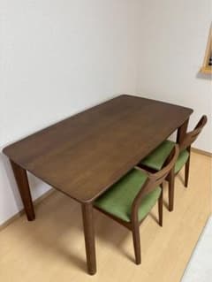 木製テーブルと黒の回転椅子セット