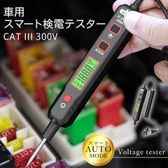 車用直流電圧検電器 DCテスター デジタル電圧計 LEDライト付き 導通テスト 自動レンジ 直流12V 24V対応 オートテスター バッテリー診断 安全CAT3 300V対応 軽量コンパクト 電圧 測定器 簡単 日本語説明書付き 自動車