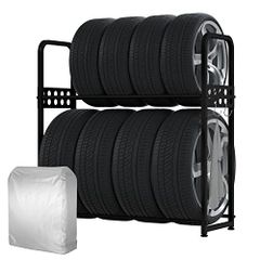 MEICHEPRO タイヤラックセット カバーとキャスター付属 タイヤスタンド 2段式タイヤラック 8本タイヤ収納 耐荷重300kg 幅105.5cm×奥行38cm×高さ106cm (ブラック セット)★m
