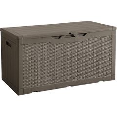 SOFTSEA 物置 屋外収納庫 大容量 170L ベランダ収納ボックス 防水 木目調 おしゃれ 簡単組立 鍵穴付き 置き配 ストッカー ガーデン 収納ケース ベンチ 耐荷重100kg (ブラウン)★m