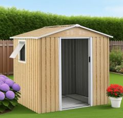 物置 屋外 スチール 倉庫 床材補強フレーム付き 戸外収納庫 物置キット おしゃれ 大型 防さび ベランダ 防水 ドア スチール 屋外収納 ガーデニング 庭 庭用倉庫 農具収納 組立式設計【可動棚&すべり出し窓付き】 (ナチュラル, 4132L)★m