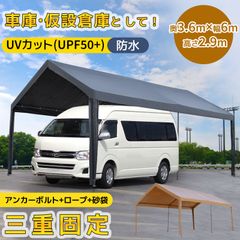 【UPF50+UVカット&防雨】テント 車庫テント ガレージテント 車庫 お祭り 倉庫 奥3.6m×幅6m×高さ2.9m ガレージテント カーポート 軽自動車用 大型 車 駐車 スチール製 頑丈 仮設倉庫 タープテント