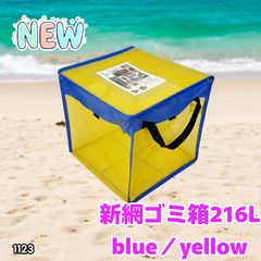 #1123 ゴミ 収集 ボックス 網 ネット 216L ブルー × イエロー ボックス 蓋あり カラス除け 高強度ネット 軽量 折りたたみ式 簡単組立 水洗い可能 ※一部地域離島別途配送料有