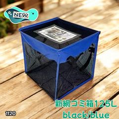 #1120 ゴミ ボックス 網 ネット 125L ブルー×ブラック 蓋あり カラス除け 軽量 折りたたみ式 簡単組立 水洗い可能 ※北海道、沖縄本島、沖縄の離島、その他離島へは別途配送料有り