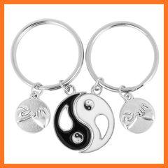 【新品】 BESTOYARD 1ペアカップルキーホルダーチャーム陰陽キーホルダーパズルマッチングペンダントステンレス鋼キーリング装飾キー飾りカップルのための女性男性