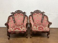 ●豪華 ロココ調 1人掛けソファ 2点セット 1P サロンチェア 彫刻 応接 高級家具 英国アンティーク調 バロック調 (貝1278)