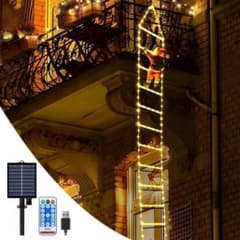 Letmy クリスマス 飾り 屋外 ソーラーライト 防水IP65 はしごライト サンタ同梱 ソーラー充電/USB充電 十種類照明モード 1500mAh大容量バッテリー LED イルミネーションライト 屋外 ソーラー イルミネーションロープラダー ガーデンラ★m