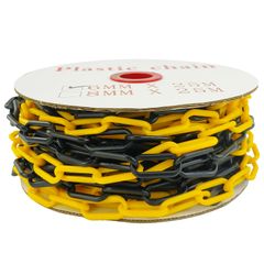 新品 黒と黄色 長さ25m直径6mm プラスチックチェーン チェーンスタンド用 駐車場 侵入禁止