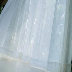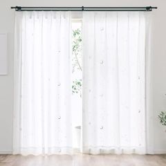 新品 レースカーテン 2枚組 昼間 外から見えにくい ミラー UVカット カーテンフック装着済みでお届け おしゃれ ストライプ刺繍 幅150x丈228cm 2枚セット