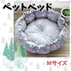 犬猫 ベッドラウンド型 ペットクッション 通年 滑り止め 洗濯可能 白グレー