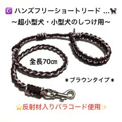 ペット用品 犬用リード ★しつけ用ショートリード★ パラコード ダークブラウン&✨反射材入り白トリコロール 全長70㎝ *超小型犬、小型犬向きの軽量タイプ