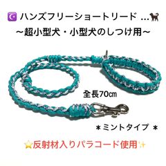 ペット用品 犬用リード ★しつけ用ショートリード★ パラコード ラメミントグリーン&✨反射材入り白ブルー 全長70㎝ *超小型犬、小型犬向きの軽量タイプ