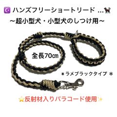 ペット用品 犬用リード ★しつけ用ショートリード★ パラコード ラメ黒ゴールド&✨反射材入りカーキ 全長70㎝ *超小型犬、小型犬向きの軽量タイプ