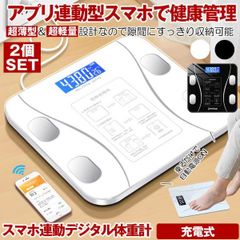 2個セット 体重計 デジタル ヘルスメーター スマホ アプリ ブルートゥース Bluetooth 乗るだけ 薄型 軽量 小型 軽量 電源自動ON/OFF バックライト付 充電式
