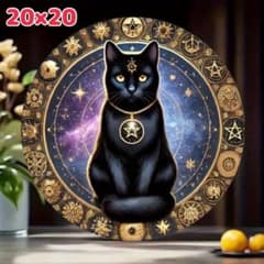 ウェルカムボード 黒猫 魔法陣 20cm 幻想的 インテリア 壁掛け 猫好き必見