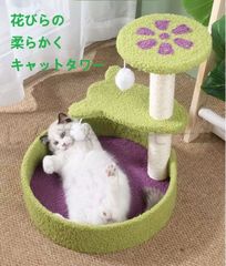 キャットタワー 据え置き型 キャットツリー 2段 猫用 ペット用品 ベッド 寝床 爪とぎ ボール付き おしゃれ ねこ ネコ ペットグッズ
