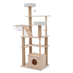 多頭飼いに!宇宙船デザイン おしゃれ木製キャットタワー