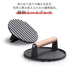 鋳物ミートプレス 丸型ミートプレス ベーコンプレス ミートプレッサー 肉押さえ グリル 肉おさえ ミートプレッサー 肉 鉄板 鋳物 鋳鉄ベーコンプレス 調理 プレス 調理器具 波型デザイン バーベキ AHUD305