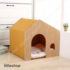 ペットハウス ハウス 小屋 W52×D47×H50cm 屋根付き ペットベッド ペットベット 犬 猫 ペット クッション付き 天然木 木製 ペット用ハウス ペット用ベッド