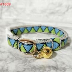 420.首輪 鈴付き 猫 犬 調整可 雪の結晶柄 緑 雪 結晶 季節 可愛い