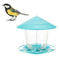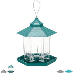 バードフィーダー 野鳥 小鳥 野鳥の餌台 吊り下げ 自動供給 上質プラスティック 洗える屋根付きバードウォッチング 鳥 エサ台 給餌器餌入れ 庭 ガーデン ベランダ屋根付き S字フック付き鳥 (グリーン)