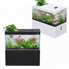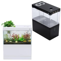 【アクアエデンティア】小型オーバーフロー水槽セット USBポート内蔵 静音ポンプ 自循環ろ過 LEDライト付き ベタ・メダカ・観賞魚用 卓上アクアリウム アクアポニックス対応 3.5L/6L ホワイト・ブラック (ホワイト, M(3.5L水槽))★m