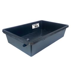 大型メダカ飼育ケース 80リットル 黒 オーバーフロー(大雨)対策付トロ舟型 金魚飼育容器や睡蓮鉢、ビオトープ水槽、めだか掬いにも