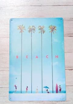 ブリキ看板 レトロ風 アート ビーチ ヤシの木 夏 サマー ノスタルジック