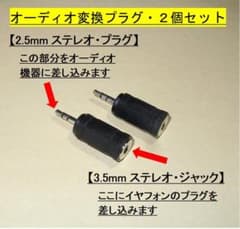 オーディオ変換プラグ【2個】3.5mmジャック⇒2.5mmプラグに変換・◆動作品