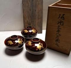 江戸時代 栗色 蓋付き椀 3客 木製漆器 骨董品