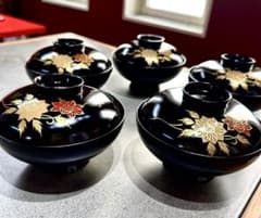 たち吉 漆塗りの吸い物椀 5セット 箱付き