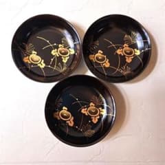 木製漆器 菓子皿 3客 銘々皿 金蒔絵 骨董品