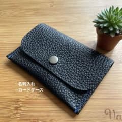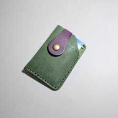 ハンドメイド 緑色レザー 二つ折りカードケース 名刺入れ