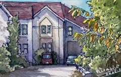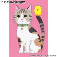 【匿名配送】絵画 「赤富士と黒猫」アート 原画 A4サイズ金額つき