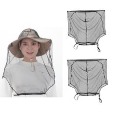 【人気商品】蚊対策グッズ 野外作業 通気性 キャンプ 虫よけネット 釣りやアウトドアに ヘッドネット フェイスガードネット 防虫 調節コード付き 長さ54cm アップグレード版 収納袋入り 虫除けネット モスキートネット(2枚セット) [Benvo]