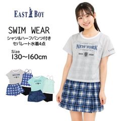 水着 女の子 キッズ ジュニア セパレート水着 EASTBOY イーストボーイ 子供 Tシャツ付き タンキニ ボトム 4点セット 130cm 140cm 150cm 160cm 3338132