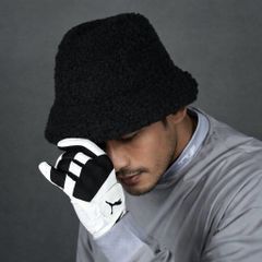 送料無料 アウトレット サンプル品 ブラック サイズ調整可能 ロゴ刺繍 ボアフリース ユニセックス ゴルフバケットハット ゴルフウェア メンズ レディース キャップ 秋冬 防寒 ツバ 無地 ワンポイント アクセサリー 日除け パシャ売り S-S