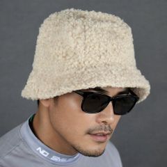 送料無料 アウトレット サンプル品 ベージュ サイズ調整可能 ロゴ刺繍 ボアフリース ユニセックス ゴルフバケットハット ゴルフウェア メンズ レディース キャップ 秋冬 防寒 ツバ 無地 ワンポイント アクセサリー 日除け パシャ売り S-S