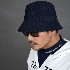 送料無料 アウトレット サンプル品 ネイビー サイズ調整可能 ロゴ刺繍 ボアフリース ユニセックス ゴルフバケットハット ゴルフウェア メンズ レディース キャップ 秋冬 防寒 ツバ 無地 ワンポイント アクセサリー 日除け パシャ売り S-S