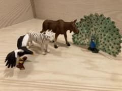 動物フィギュアセット(イーグル、タイガー、ムース、孔雀)