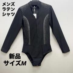 社交ダンス メンズ ファスナー ラテンシャツ ブラック ラインストーン サイズM