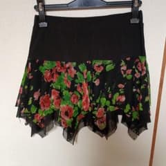 社交ダンス オーバースカート 黒地 赤花柄