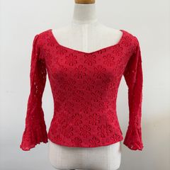 【HERMOSA】フラメンコ衣装 トップス フリル袖 赤 レース 花柄 七分袖